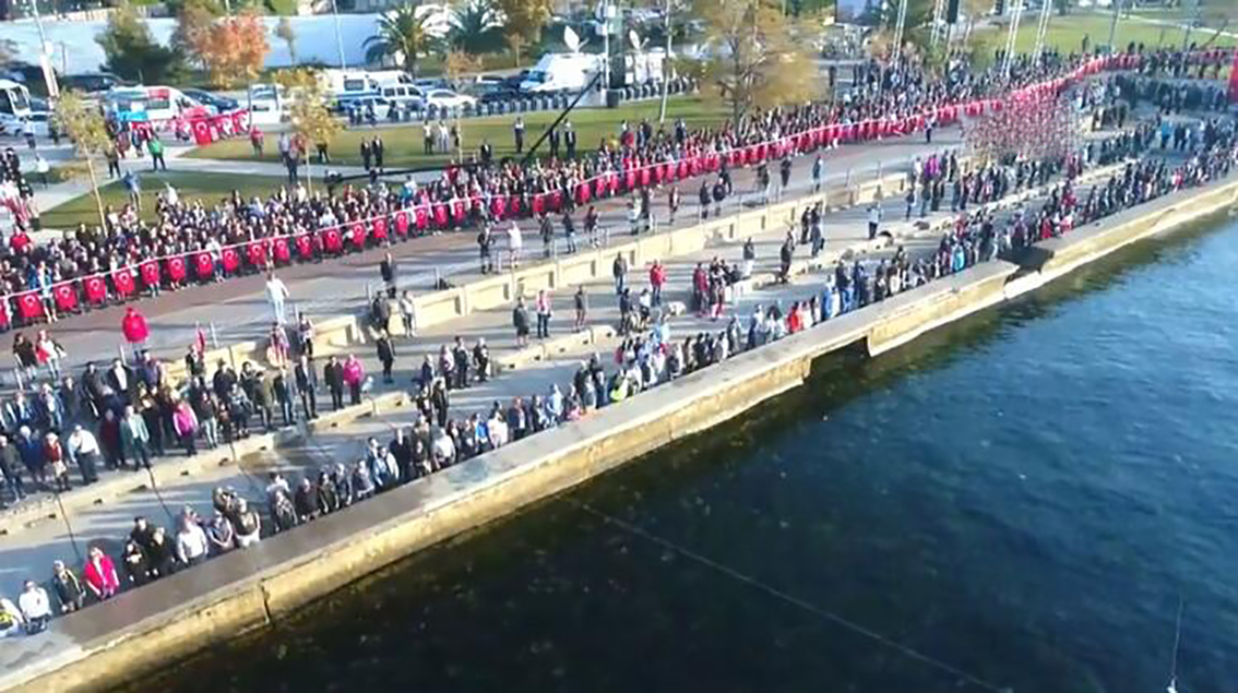 Kadıköy'de Ata'ya Saygı Zinciri oluşturuldu. Binlerce kişi el ele verdi.[/caption]