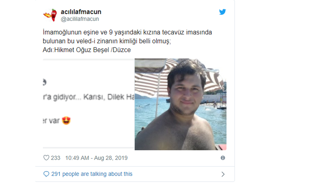 Sosyal medyada bir kullanıcı İmamoğlu'nun eşine ve 9 yaşındaki kızına tecavüz imasında bulunan kişinin Hikmet Oğuz Beşel olduğunu yazdı.