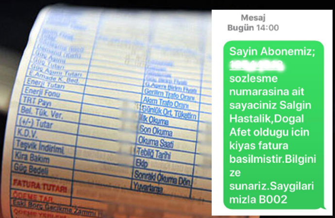 İnsanlardan evlerine kapanması isteyen AKP iktidarı faturalarda indirim ya da ertelenmesi için hiçbir tedbir almıyor. Üstelik, elektrik, su ve doğalgaz faturalarında yeni döneme geçiliyor. Koronavirüs'ün yayılmasını önlemek için personelin sayaç okuması yerine, son 2 yıllık ortalama tüketim değerleri faturaya yansıtılacak. Yani örneğin doğalgaza kışın yaktığınız değerler üzerinden fatura verilecek. Ne kadar süreceği belli olmayan salgının ardından gerçek tüketimler ölçülecek.