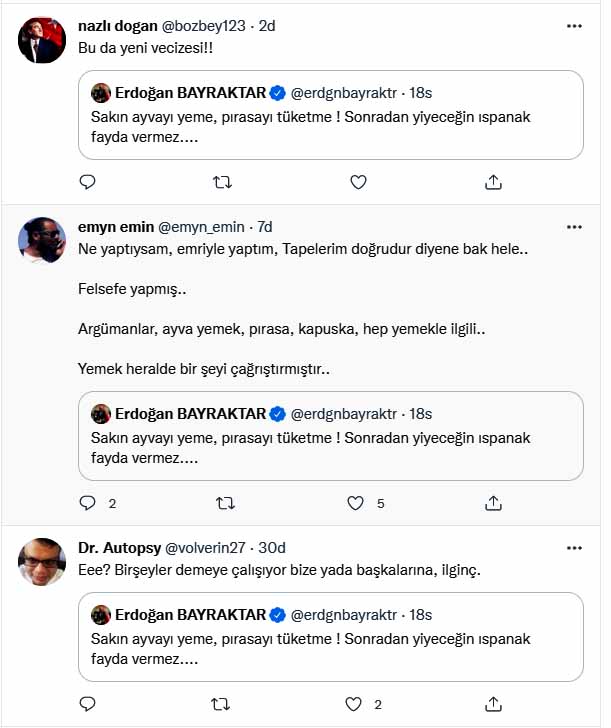 İşte Bayraktar'ın paylaşımına gelen yorumlar: