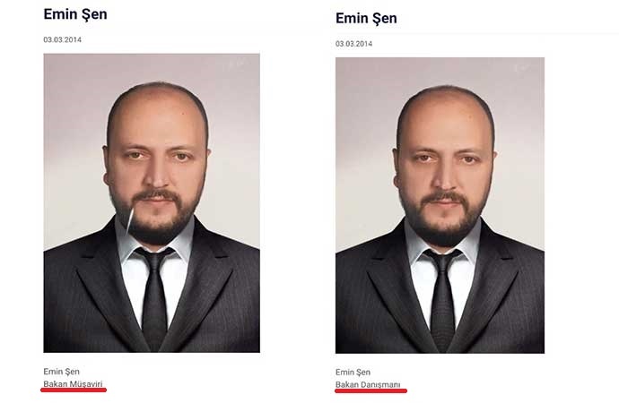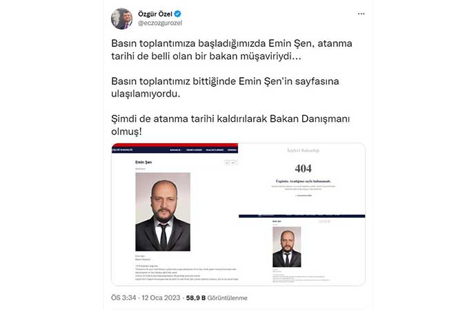 "Basın toplantımıza başladığımızda Emin Şen, atanma tarihi de belli olan bir bakan müşaviriydi... Basın toplantımız bittiğinde Emin Şen'in sayfasına ulaşılamıyordu. Şimdi de atanma tarihi kaldırılarak Bakan Danışmanı olmuş!"