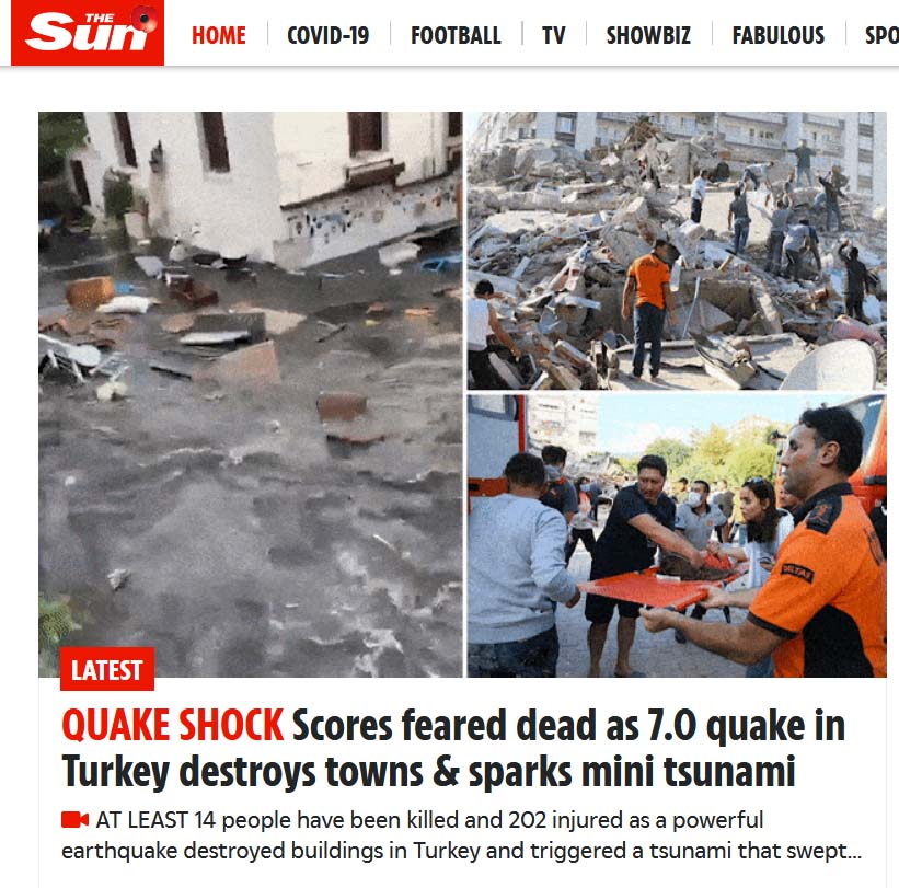 Avrupa basını, “Önce büyük bir deprem ve ardından tsunami. Ege depremle sarsıldı. Binalar yıkıldı, çok sayıda ölü ve yaralı var. Depremin hemen ardından sokaklara deniz suyu geldi.