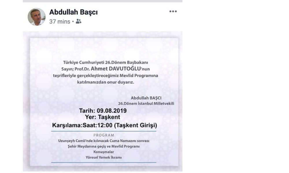 Ali Babacan'ın yeni parti kurmak için AKP'den istifa etmesiyle ne yapacağı merak konusu olan eski başbakan Ahmet Davutoğlu ile ilgili tartışmalar sürüyor. Son günlerde Davutoğlu'nun AKP içerisinde kalarak bir değişim mücadelesi vereceği iddiaları öne sürülürken, buna karşılık yeni parti kurma düşüncesinde bir değişiklik olmadığı da belirtilenler arasında. https://tele1.com.tr/ali-babacanin-kuracagi-yeni-parti-hangi-ittifakta-yer-alacak-74076/ Ahmet Davutoğlu ve ekibinin nasıl hareket edeceği tartışılmaya devam ederken, 26. dönem AKP İstanbul milletvekili Ahmet Başçı 'dan dikkat çeken bir paylaşım geldi. Davutoğlu'nun hemşehrisi olan Başçı, sosyal medya hesabından Konya'da düzenlenecek olan bir mevlid programını duyururken, mevlid programının Ahmet Davuoğlu'nun teşrifleriyle gerçekleştirileceğini belirtti. İşte AKP eski milletvekili Abdullah Başçı'nın o paylaşımı: