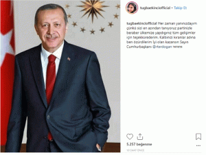 Yüksek Seçim Kurulu (YSK) tarafından İstanbul Büyükşehir Belediye (İBB) Başkanlığı seçiminin iptal edilmesi sonrası çok sayıda sanatçı, mazbatası geri alınan Ekrem İmamoğlu için destek mesajı yayınladı ve "Her şey çok güzel olacak" paylaşımı yaptı. Bu sanatçılara bir tepki de, şarkıcı Tuğba Ekinci'den geldi. Sosyal medya hesabında Cumhurbaşkanı Erdoğan'ın fotoğrafını paylaşan Ekinci, "Her zaman yanınızdayım, çünkü sizi en azından tanıyoruz. Partinizle beraber ülkemize yaptığınız tüm gelişimler için teşekkür ederim. Kalbinizi kıranlar adına ben özür dilerim. İyi olan kazansın Sayın Cumhurbaşkanı Recep Tayyip Erdoğan" dedi.
