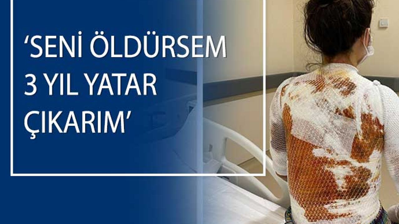 ''En son cumartesi günü çocuğum 2 yaşına geldiği için sütten ayırıyordum. Kızım, sabah erken uyandı. Kahvaltıyı hazırladım. Eşime seslendim 'Hadi gel' diye. Sonra ‘Sen beni neden uyandırıyorsun. İlla uyandıracaksın değil mi?’ dedi. ‘Kahvaltı hazır bir daha hazırlayamam çocuk acıktı’ dedim. Eşim de, 'Ben sabaha kadar uyuyamadım, beni rahatsız etme’ dedi. Biz çocuğumla kahvaltıya oturduktan sonra geldi. ‘Ne olursa olsun çocuğu alacağım. Sana da tekmeyi vuracağım’ dedi. Sonra kaynar suyu boynumdan aşağıya boşalttı. Aslında benim yüzüme atacaktı. Ben yüzümü çevirmeseydim yüzüme geliyordu. O can havliyle kaçtım; ama tişört üzerime yapışmıştı. Kaynar suyun kalanını arkamdan döktü. Bu da hem çocuğumun ayağına hem de kalçama geldi. Beni bir kez daha yaraladı. Daha sonra ben acımdan bayılmışım. Ayıldığımda beni saçlarım ve kollarımdan tutup banyoya doğru götürüyordu. Sonra kendimi toparladım. Kulağıma kızımın ağlama sesleri geliyordu.''