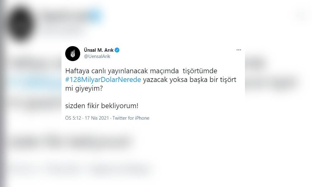 Almanya’da yaşayan Türk boksör Ünsal Arık, “128 Milyar Dolar Nerede?” sorusunu boks ringlerine taşıyacağını ve 24 Nisan’da Aleksandar Kuvac ile yapacağı maça “128 Milyar Dolar Nerede?” yazılı tişört ile çıkacağını açıkladı. Cumhuriyet’e konuşan Türk boksör Ünsal Arık, Almanya Augsburg’da seyircisiz gerçekleştirilecek maçın internet üzerinden canlı yayımlanacağını belirtti. Arık, “Her zaman medya gücümü değerlendirip insanlara doğruyu göstermeye çalıştım. Şimdi ‘128 Milyar Dolar Nerede?’ tişörtü ile maça çıkacağım. Nedeni çok basit. Herkese terörist, FETÖ’cü ve vatan haini damgasını vurdular. Ben de terörist, hırsız, FETÖ’cü ve vatan haini kimin olduğunu hatırlatmak istiyorum” dedi.