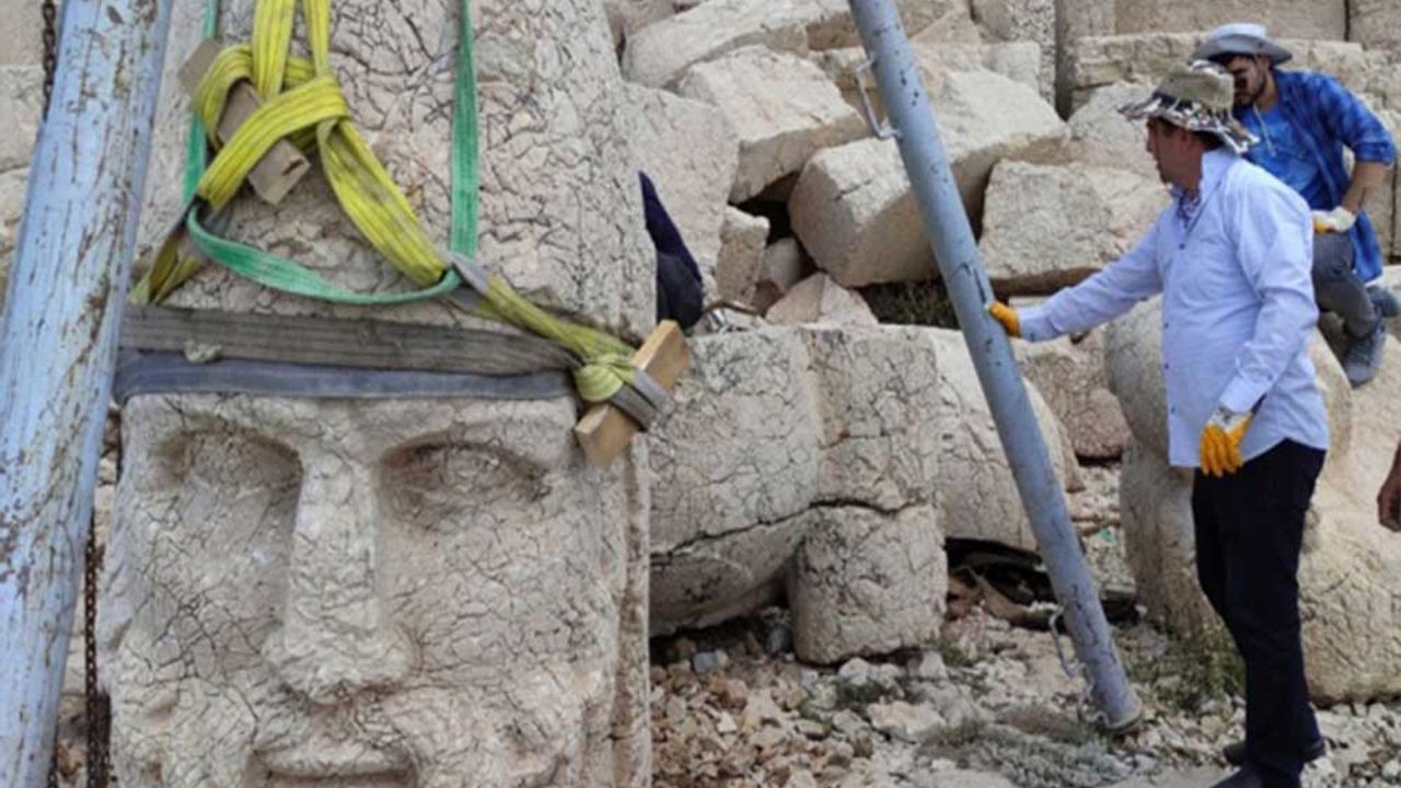 2 bin 206 metre yükseklikteki Nemrut Dağı'nın batı terasında bulunan Herakles heykeli, deprem ve kar yığının oluşturduğu baskı nedeniyle öne doğru eğildi. Devrilme tehlikesi olan heykelin düzeltilmesi için Adıyaman Müze Müdürlüğü yetkileri, Şanlıurfa Kültür Varlıklarını Koruma Kurulu'ndan izin aldı.