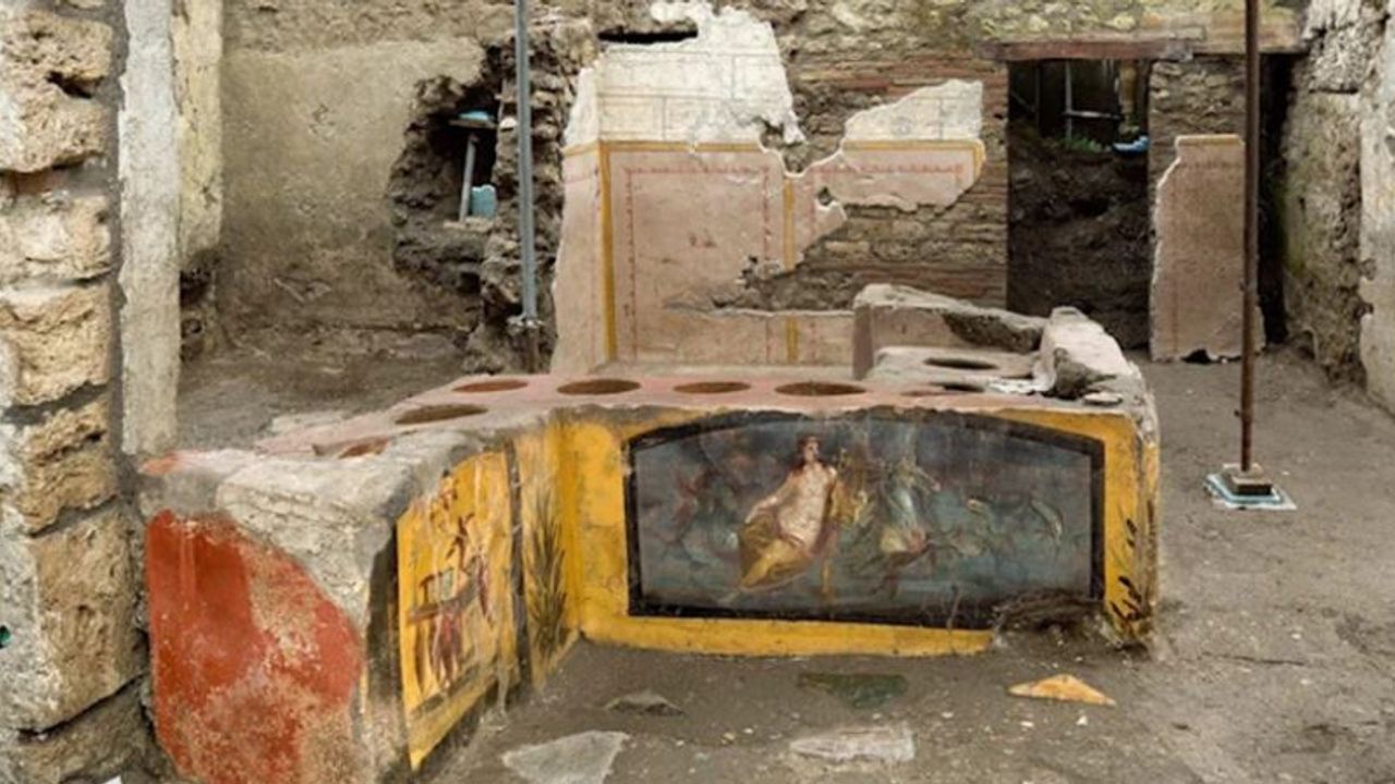 Bir zamanlar, bölgede izleri bulunan domuz eti, balık, salyangoz ve sığır eti de dahil olmak üzere Roma müşterilerine mutfak lezzetleri sunan tezgah ve çevresi, arkeolojik parkın Regio V bölgesinde keşfedildi.