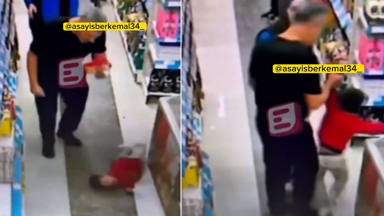 Asayiş Berkemal'in paylaştığı görüntülerde, bir kişinin küçük bir çocuğu marketin içinde darp ettiği görüldü.