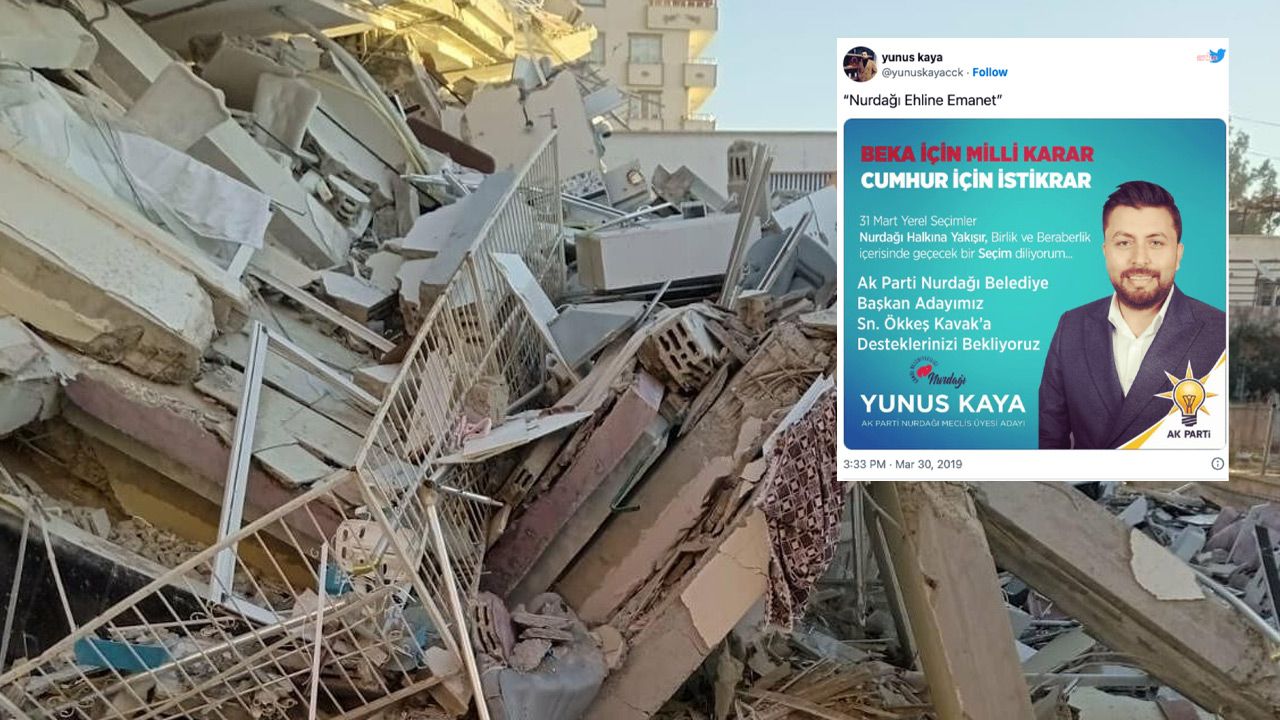 6 Şubat depremlerinde, Nurdağı Belediyesi'nin AKP'li Meclis Üyesi ve müteahhidi Yunus Kaya'nın yaptığı Yaşam Konutları, Yunus Kaya Apartmanı ve CCK Apartmanı yıkıldı, yüzlerce kişi hayatını kaybetti.