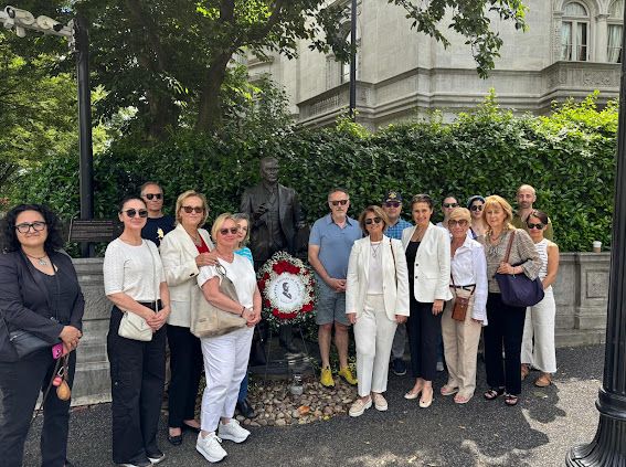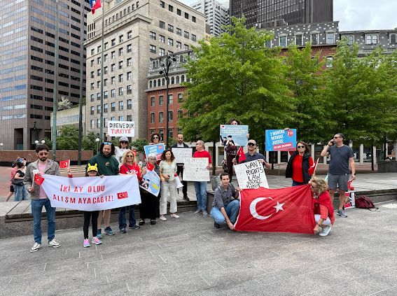 Washington DC’de, yabancı ülke büyükelçiliklerinin bulunduğu elçilikler caddesi” olarak anılan Massachusetts Caddesi’ndeki Atatürk heykelinin önünde yapılan törende, tutuklu öğrenciler için yazılan mektup okundu, AKP iktidarı protesto edildi.