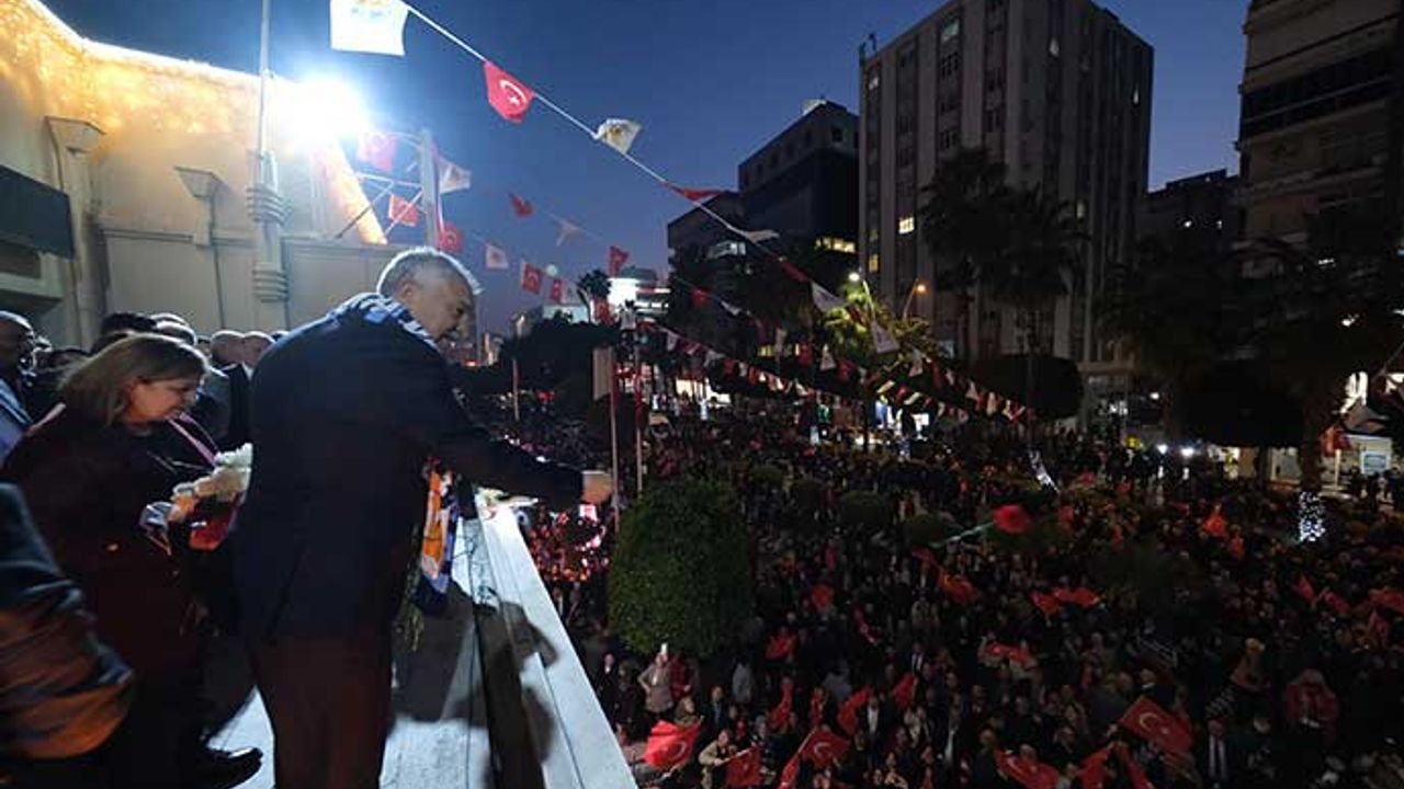 Adana Büyükşehir Belediye Binası önünde toplanan 10 bin Adanalıya hitap eden Başkan Zeydan Karalar, “Hep beraber yeni ufuklara” mesajı verdi.