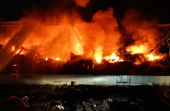 Adana'daki bir motor üretim tesisinde yangın çıktı. İtfaiye ekiplerinin yangına müdahalesine TOMA ve iş makineleri destek verdi.