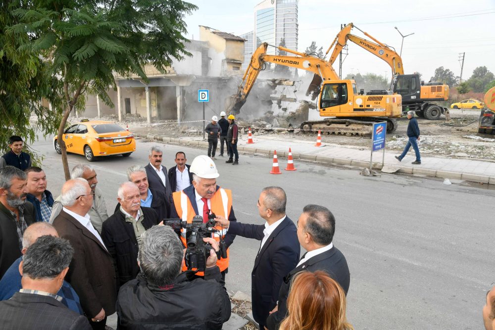 Başkan Zeydan Karalar, yıkım çalışmalarını bizzat denetlemesinin ardından bölge esnafı ve halkla bir araya geldi, sorun dinledi, çalışmalarla ilgili bilgi verdi.