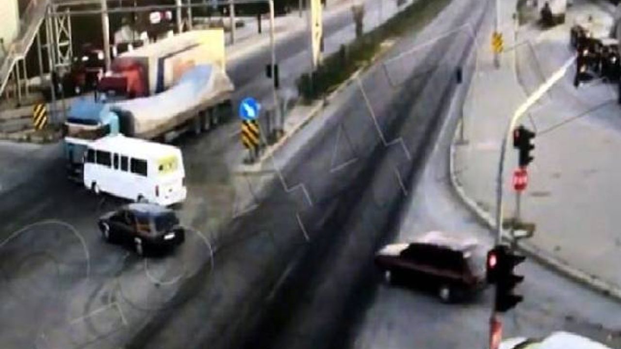 Afyonkarahisar'ın Dinar ilçesinde, sürücüsünün ışık ihlali yaptığı TIR, minibüse, kontrolden çıkan minibüs de yanındaki otomobile çarptı. 2'si ağır 6 kişinin yaralandığı kaza güvenlik kamerasına yansıdı.