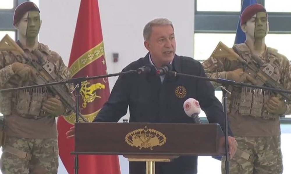Hulusi Akar'ın Özel Kuvvetler Komutanlığı'nda yaptığı konuşma sırasında arkasında duran 2 askerin silahlarında şarjör olmaması dikkat çekti.