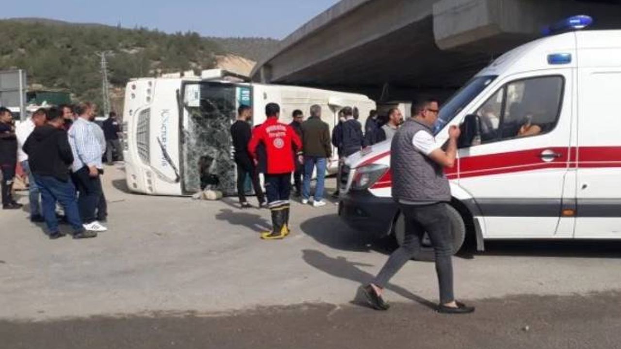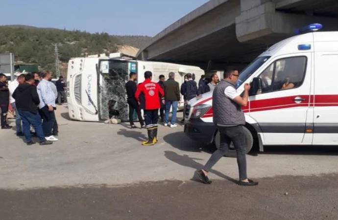 Mersin'de Akkuyu Nükleer Güç Santrali işçilerini taşıyan otobüs devrildi. Otobüs devrilmesi ile 11 kişi yaralandı. İşçiler çevredeki hastanelere kaldırıldı.