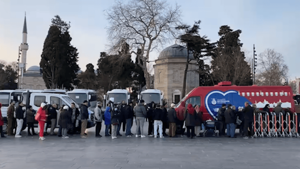 İstanbul Büyükşehir Belediyesi (İBB) Beşiktaş Meydanı'na kurduğu mobil büfede iftarlık dağıttı. Ekonomik kriz nedeniyle zor zamanlardan geçen yurttaşlar İBB'nin iftarlık dağıtımı yaptığı mobil büfenin önünde metrelerce kuyruk oluşturdu.