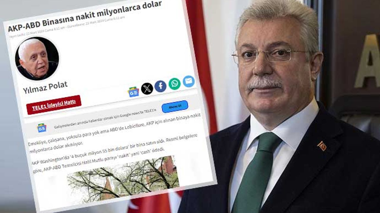 TELE1'in Meclis'te gündem olan, AKP’nin geçen yıl Washington’da aldığı iki binaya ilişkin haberini AKP'li Muhammet Emin Akbaşoğlu doğruladı. Akbaşoğlu, "Daha önce Amerika'da, Washington’da alınan yerin yetersizliği nedeniyle bu yerin satışa çıkartılması ve onun yerine daha uygun fiziki şartlara sahip bir yerin alınması apaçık bir şekilde; kanuni, hukuki, şeffaf bir şekilde gerçekleşmiştir" dedi.