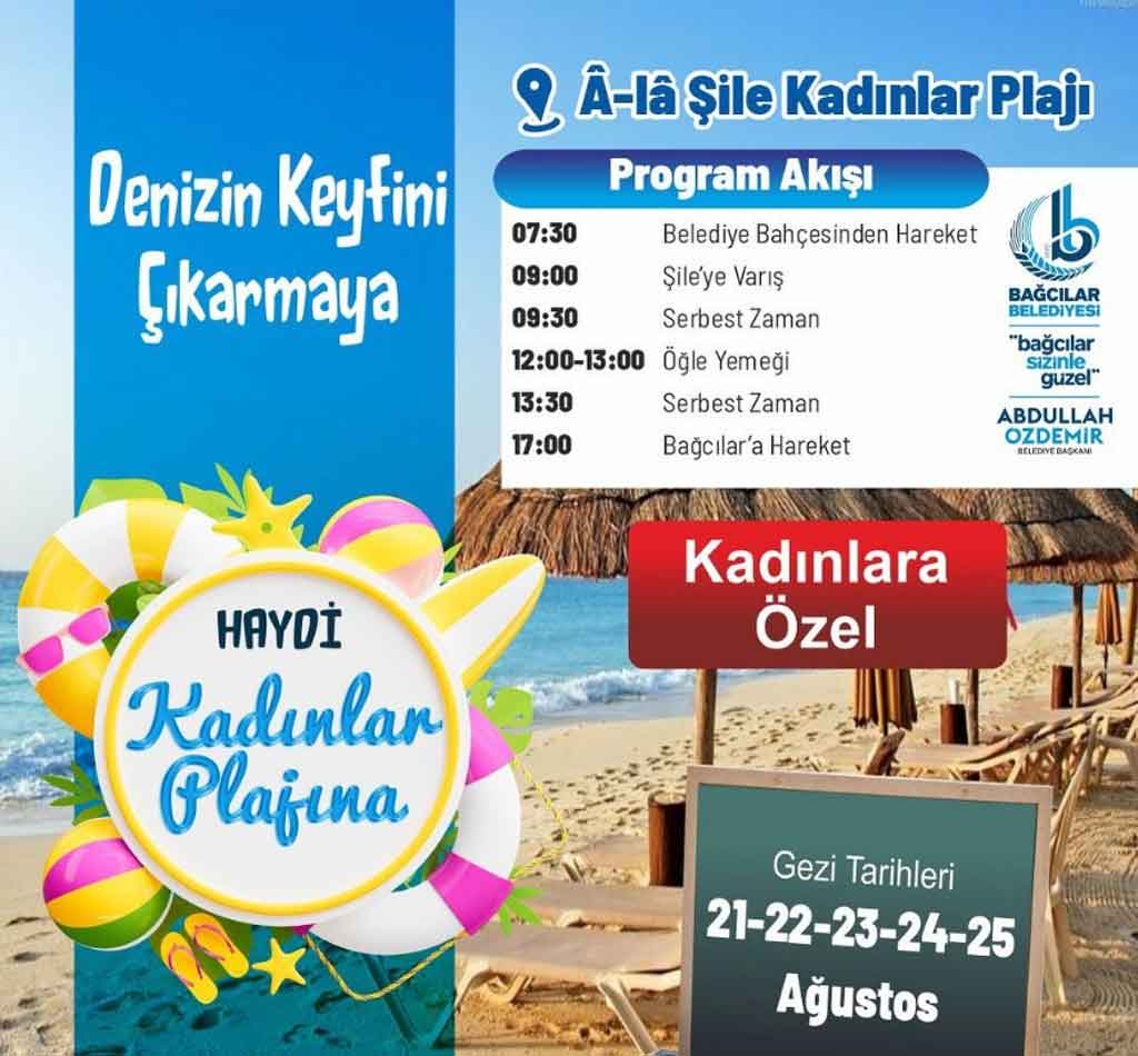BirGün’de yer alan habere göre, Bağcılar Belediyesi sosyal medya hesaplarından yaptığı “Denizin Keyfini Çıkarmaya Hazır Mısınız? Haydi Â-lâ Şile Kadınlar Plajına” başlıklı duyuruda “kadınlara özel” deniz turu düzenlediğini açıkladı.