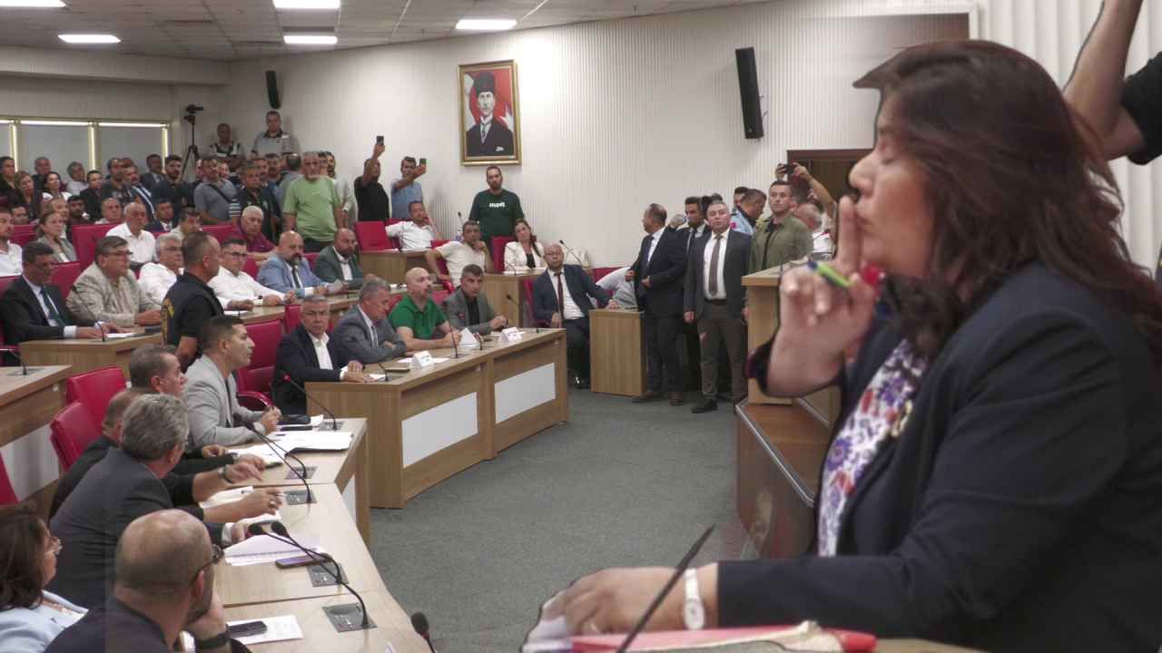 Öte yandan meclis salonunun basın girişinde bekleyen Belediye Başkan Vekili Polat Mersin'in ANKA Haber Ajansı ekibinin görüntü almasını engellemek için özel güvenlik ekiplerine talimat verdiği kameralara yansıdı.