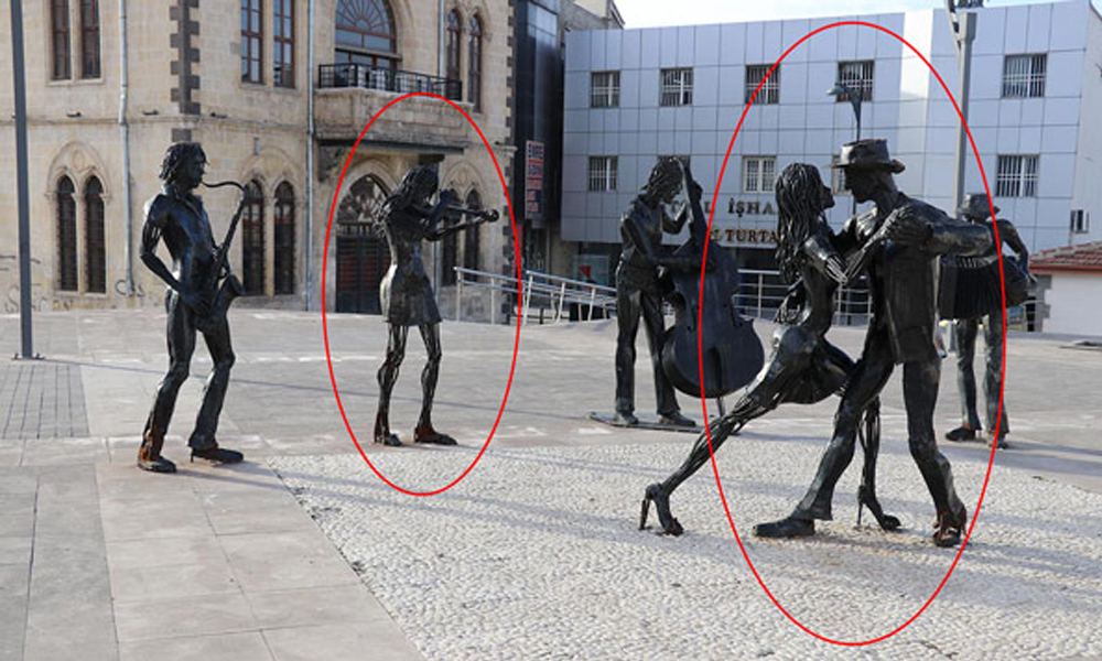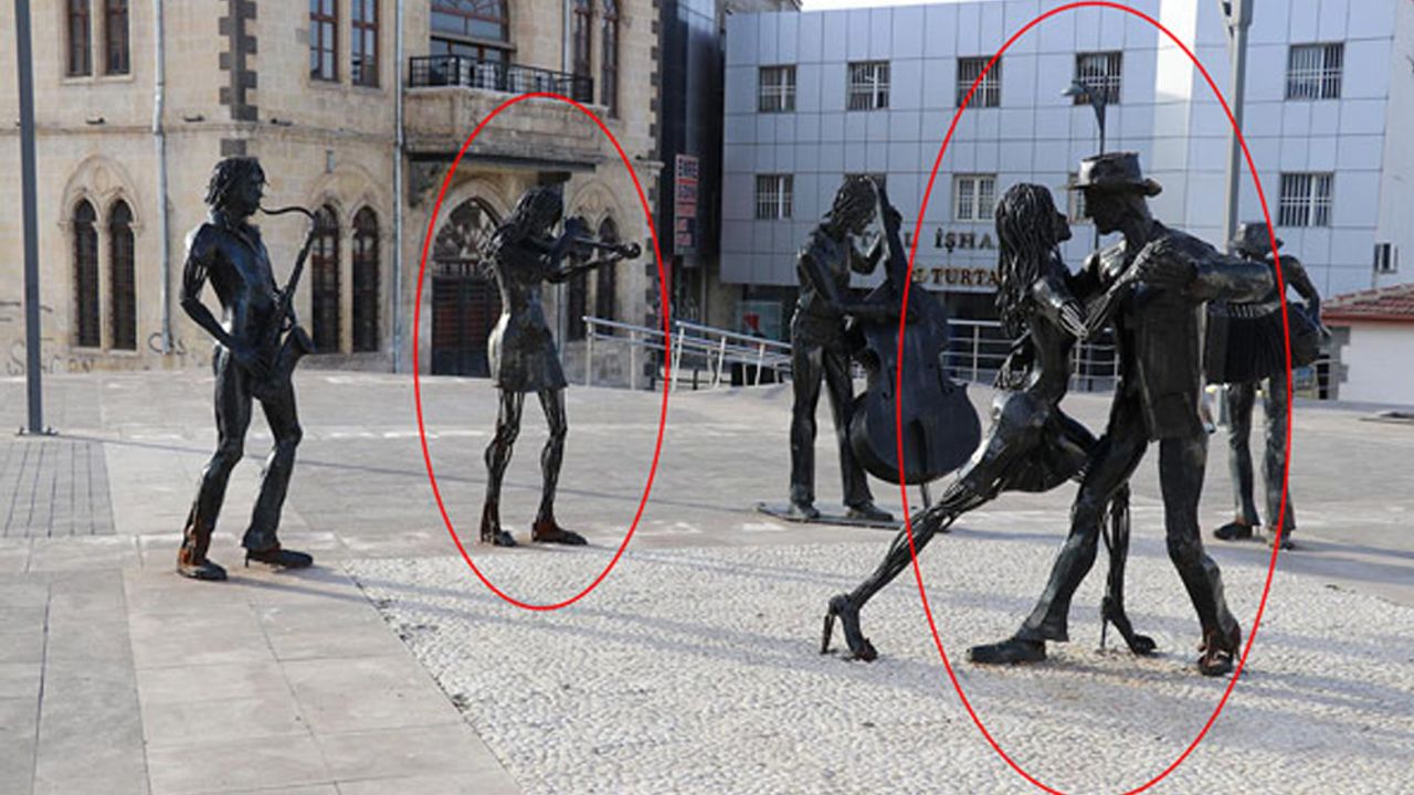 Gaziantep’in Şahinbey ilçesi Taşkent Meydanı'nda bulunan dans figürü içeren heykellerin kaldırılması tartışmaları sürüyor. HÜDAPAR'lılar kaldırılsın dediği o heykellerden iki tanesinin AKP'li Belediyeden kaybolduğu ortaya çıktı.