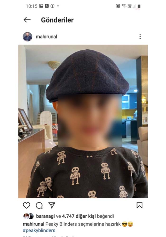AKP Grup Başkanvekili, Kahramanmaraş Milletvekili Mahir Ünal’ın dünyaca ünlü mafya dizileri arasında yer alan İngiliz dizisi Peaky Blinders’le ilgili beş yaşındaki oğlu M.S’nin fotoğrafı ile yaptığı Instagram paylaşımı dikkat çekti.