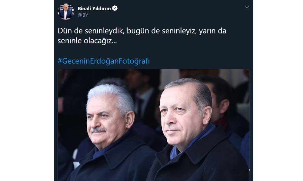 İçişleri Bakanı Süleyman Soylu ve AKP eski milletvekili Şamil Tayyar'ın Twitter'da Trending Topic (TT) olan “#GeceninErdoğanFotoğrafı” etiketiyle yaptığı paylaşımlar dikkat çekti. Süleyman Soylu, Erdoğan fotoğrafıyla birlikte "Liderimiz... Yolun yolumuzdur" paylaşımında bulunurken, Şamil Tayyar ise “Cumhurbaşkanımızla fotoğrafı olan dostlar sıraya girmiş. Çok şık. Bir de 15 Temmuz gecesi HTS kayıtlarımızı paylaşma imkanımız olsa, ne iyi olurdu, sevgimizi taçlandırırdık” ifadelerini kullandı. AKP eski Milletvekili Şamil Tayyar ise "Bir de 15 Temmuz gecesi HTS kayıtlarımızı paylaşma imkanımız olsa" diyerek Erdoğan'ın fotoğrafını paylaşmadı. Ağrı Belediye Başkanı Savcı Sayan'ın paylaştığı fotoğrafta da arkada Ahmet Davutoğlu'nun resminin olduğu görülürken, en sıra dışı fotoğraflardan birini ise Bilim, Sanayi ve Teknoloji Bakanı Mustafa Varank paylaştı. Varank, Erdoğan'ın eşofmanlarla basket oynadığı anları paylaştı. Öte yandan yandaş gazeteci isimler de ardı ardına Erdoğan fotoğraflarıyla etikete destek verdi. Fakat gece saatlerinde neden böyle bir sosyal medya çalışmanın organize edildiği anlaşılamazken, akıllarda soru işareti yarattı. İşte o paylaşımlardan bazıları: