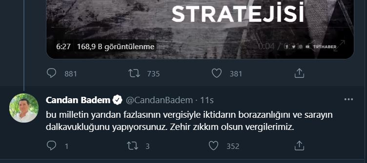 83 milyonun vergileriyle fonlanan devlet kanalı TRT'in, AKP'nin Merkez Bankası rezervleriyle ilgili taraflı siyasi videosunu YouTube kanalından yayınlaması tepki çekti. Video 15 binin üzerinde "dislike" alırken "like" sayısı 749'da kaldı.