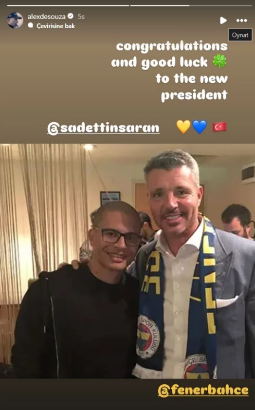 Birçok kongre üyesi ve eski sarı lacivertli yönetici, Saran’a tebrik mesajı iletirken, bir tebrik de Fenerbahçe efsanesi Alex de Souza’dan geldi.