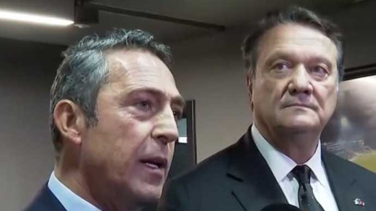 Yapılan görüşmede birçok konunun ele aldığını ifade eden Fenerbahçe Kulübü Başkanı Ali Koç, Hasan Arat’a misafirperverliği için teşekkür etti. İki takım arasında 2010-2011 sezonunda oynanması gereken Süper Kupa karşılaşmasının en kısa sürede planlanarak hayata geçirilmesi gerektiğini de belirten Koç, "Ben buraya yönetim kurulundan arkadaşlarımla beraber Hasan Bey'in yönetimine hayırlı uğurlu olsun ziyaretine geldim. Uzun süren görüşmemizde ortak sorunlarımızı, sıkıntılarımızı, Türk futbolunun konularını konuştuk. Nerede birbirimize destek olabiliriz, nerede güç birliği yapabiliriz diye konuştuk. Sonuçta bu iki kulübün DNA'sına, tarihine, halkla olan ilişkilerine, Cumhuriyet'e sıkı sıkı bağlılığına, Atatürk değerlerine sıkı sıkı bağlı olmalarına bakıldığında, özellikle vatan konularında çok paralel değerli iki kulüpten bahsediyoruz. Dolayısıyla bizim buradaki ana hedefimiz sahada, salonlarda kora kor rekabet, saha dışında da yapıcı rekabet. Sorunlarımız, sıkıntılarımız hep aynı. Finansal konular aynı. Pek çok konuda ortak hareket ederek ekonomimizi büyütebileceğimizi konuştuk. En önemli konularımızdan birisi 2011 yılından kalan Süper Kupa maçı. Bizim buna müracaat etmeden federasyonunun bunu organize etmesi gerekirdi. Bir önceki başkan Ahmet Nur Çebi'yle de aynı fikirdeydik. Ama federasyonda yeterince bir kımıldama görmedik. Ortak bir başvuru yapacağız. Tabii ki takvim çok sıkışık. En yakın zaman sanki bir sonraki sezon ligler başlamadan önce gibi görünüyor. Tabii bunun kararını futbolun amiri TFF verecektir. Ama bu maçın en kısa zamanda planlanıp hayata geçirilmesi gerekiyor. Ben buradaki sıcak, samimi, dostane, misafirperver karşılama için sayın başkan ve yönetim kuruluna da çok teşekkür ediyorum. İnşallah bu ziyaret, yapacağımız pek çok ziyaretin başlangıcı olur. Türk futbolunun buna ihtiyacı var. İyilik bulaşıcıdır. Sahada rekabet, saha dışında da yapıcı rekabet” diye konuştu.BÜYÜKEKŞİ "TALEP GELMEDİ" DEMİŞTİ