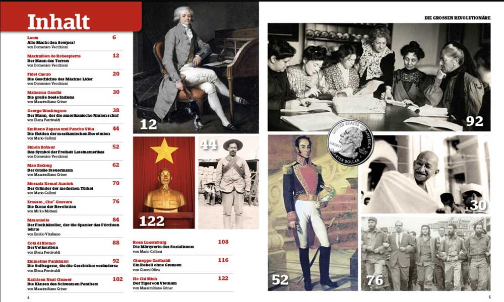 Derginin içerisinde George Washington ve Simo Boliver'la ilgili makaleler de bulunuyor.