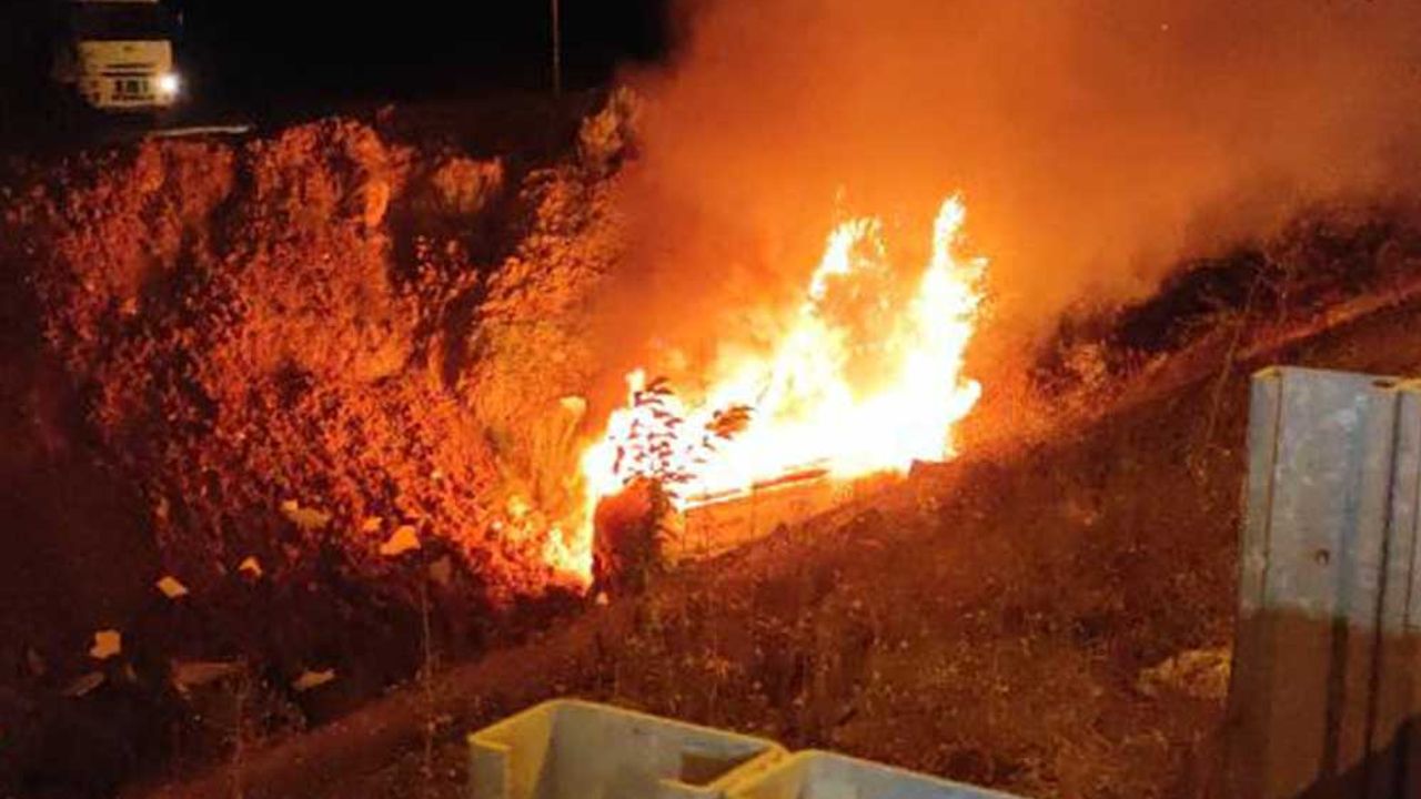 Düzce'de, bir aracın sıkıştırması sonrası kontrolden çıktığı belirtilen ambulans şarampole yuvarlandı. 3 sağlık personeli ambulansta bulunan hastayı dışarı çıkarırken, araç ise alev alev yandı.