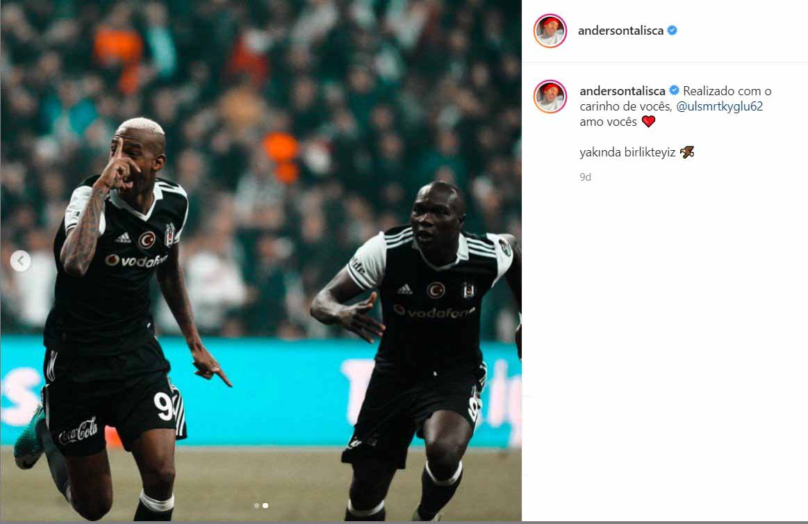 Çin ekibi Guangzhou'da forma giyen Brezilyalı futbolcu Anderson Talisca'nın yaptığı paylaşım Beşiktaşlı taraftarları heyecanlandırdı.