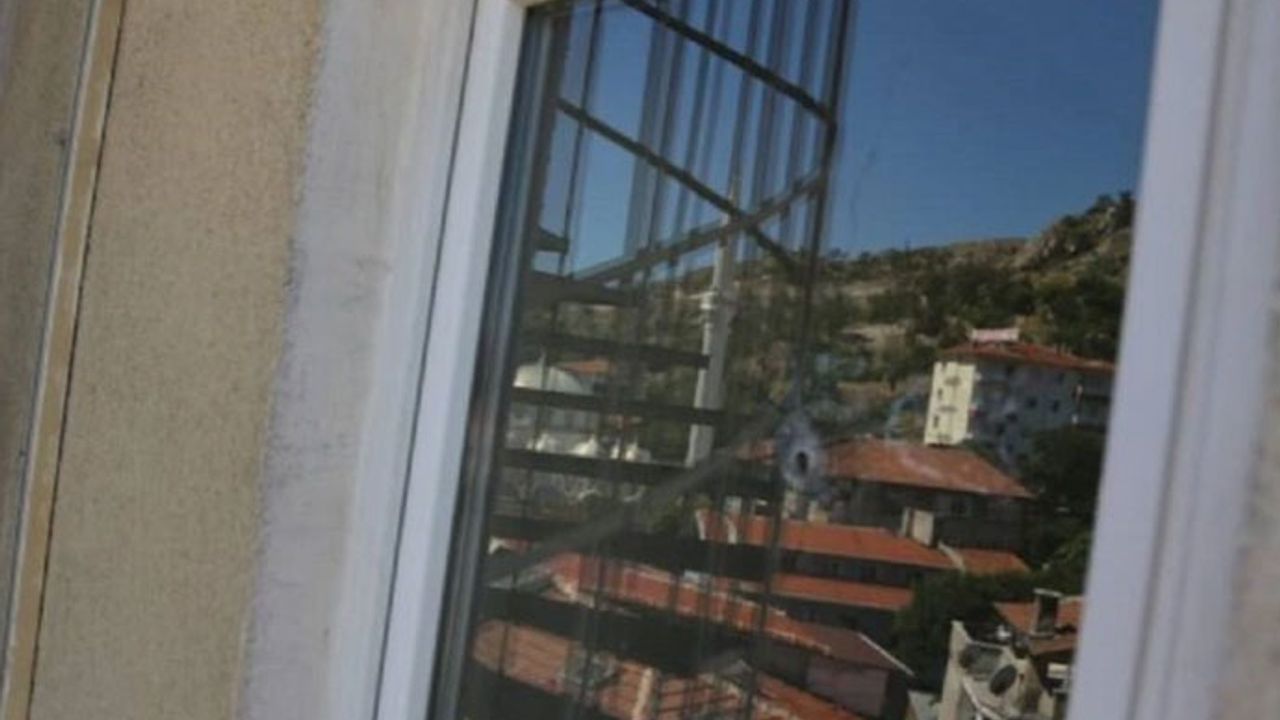 İş hanının 5’inci katında bulunan parti binasının toplantı odasının camına kurşun isabet etti.