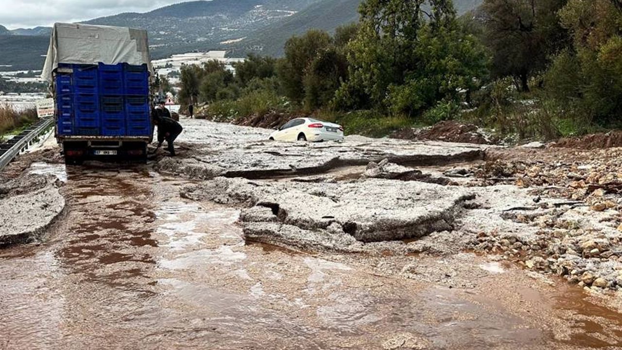 Antalya'da şiddetli yağışla birlikte oluşan sel ve dolu birikintileri nedeniyle D400 karayolu ulaşıma kapandı. Yolun 4 noktasından araç geçişi durdurulurken, bölgeye çok sayıda ekip yönlendirildi. Antalya Büyükşehir Belediyesi’ne bağlı iş makineleri yoldaki dolu ve çamur birikintilerini kaldırmak için çalışma başlattı.