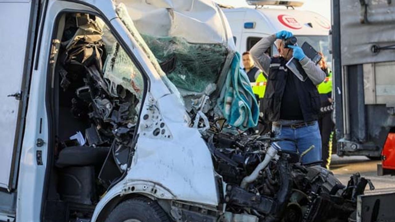 Antalya'da park halindeki TIR'a çarpan minibüsün şoförü Mehmet Burak Açıkgöz (21) hayatını kaybetti, yanındaki Arif Kamlı (22) yaralandı.