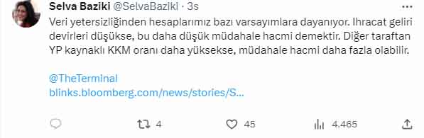 Baziki, veri yetersizliği nedeniyle hesaplamalarının bazı varsayımlara dayandığını, döviz satışında gerçek rakamın daha düşük veya daha yüksek olabileceğini belirtti.