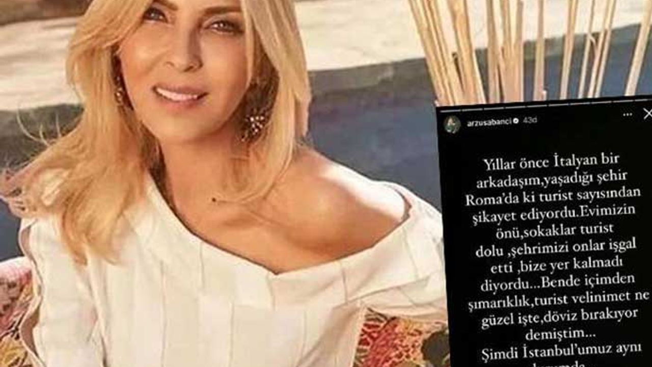 Sabancı’nın paylaşımı şu şekilde: "Yıllar önce İtalyan bir arkadaşım yaşadığı şehir Roma’daki turist sayısından şikayet ediyordu. Evimizin önü, sokaklar turist dolu, şehrimizi onlar işgal etti, bize yer kalmadı diyordu… Ben de içimden şımarıklık, turist velinimet ne güzel işte döviz bırakıyor demiştim. Şimdi İstanbulumuz aynı durumda… Nişantaşı, Bebek, sokaklar, kafeler, Türkçe konuşan yok gibi… Simsiyah kıyafetlilerle kaplı."