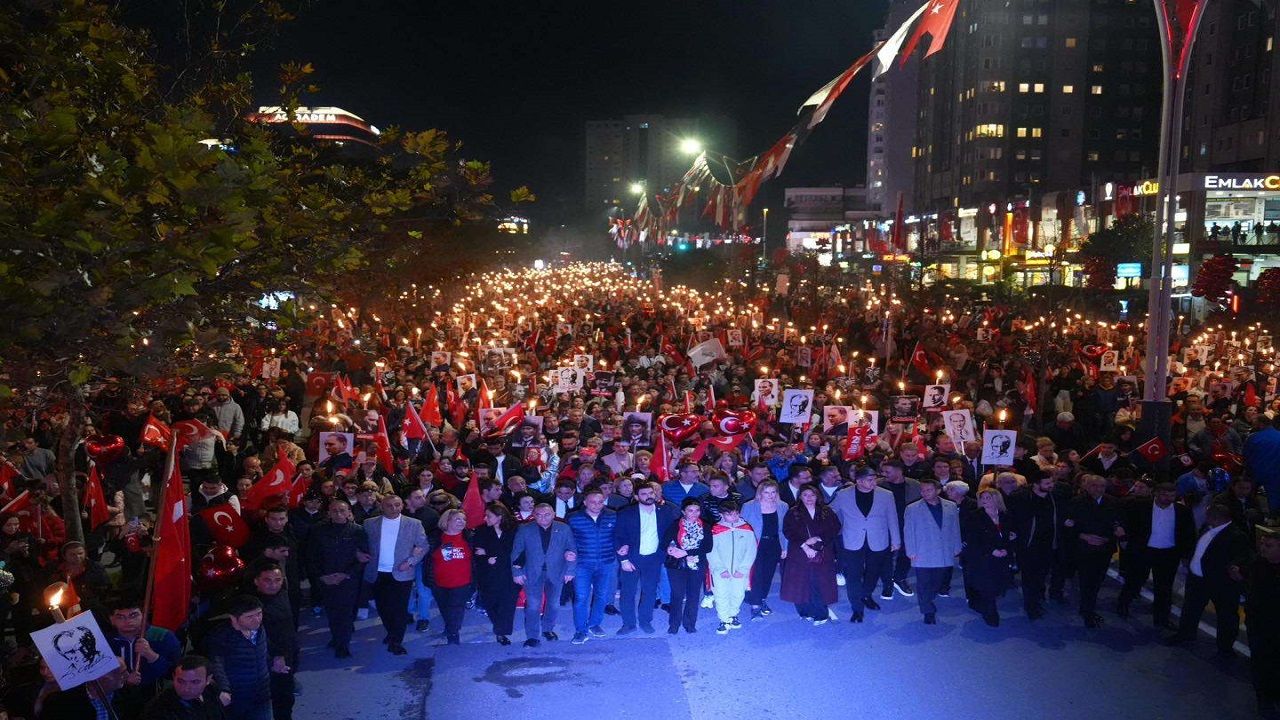 Binlerce kişinin meşaleler ve marşlar eşliğinde katıldığı Fener Alayı Yürüyüşü, Ataşehir Bulvarı 3M Migros önünden başlayıp Afet ve Acil Durum Koordinasyon Merkezi (AKOM) önünde sona erdi.