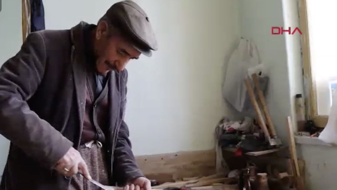 Erzurum'un Oltu ilçesinde Hüsamettin Aras (79) çevreden topladığı tahta parçalarını değerlendirerek baston, oklava, tırmık, sofra ve oyuncak gibi çeşitli ürünler imal ediyor. Aras, kiralık evinin altındaki küçük atölyede el emeğiyle ürettiği ürünleri satarak geçimini sağlıyor.