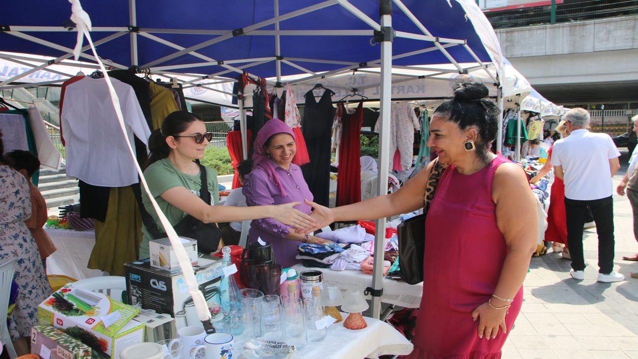 Kartallı vatandaşlar, bir gün boyunca 85 kadın girişimcinin ikinci el; giysi, oyuncak, ev eşyası, aksesuar, kitap gibi pek çok farklı ürünün uygun fiyatlarla satışa sunulduğu stantlardan alışveriş yaptı.