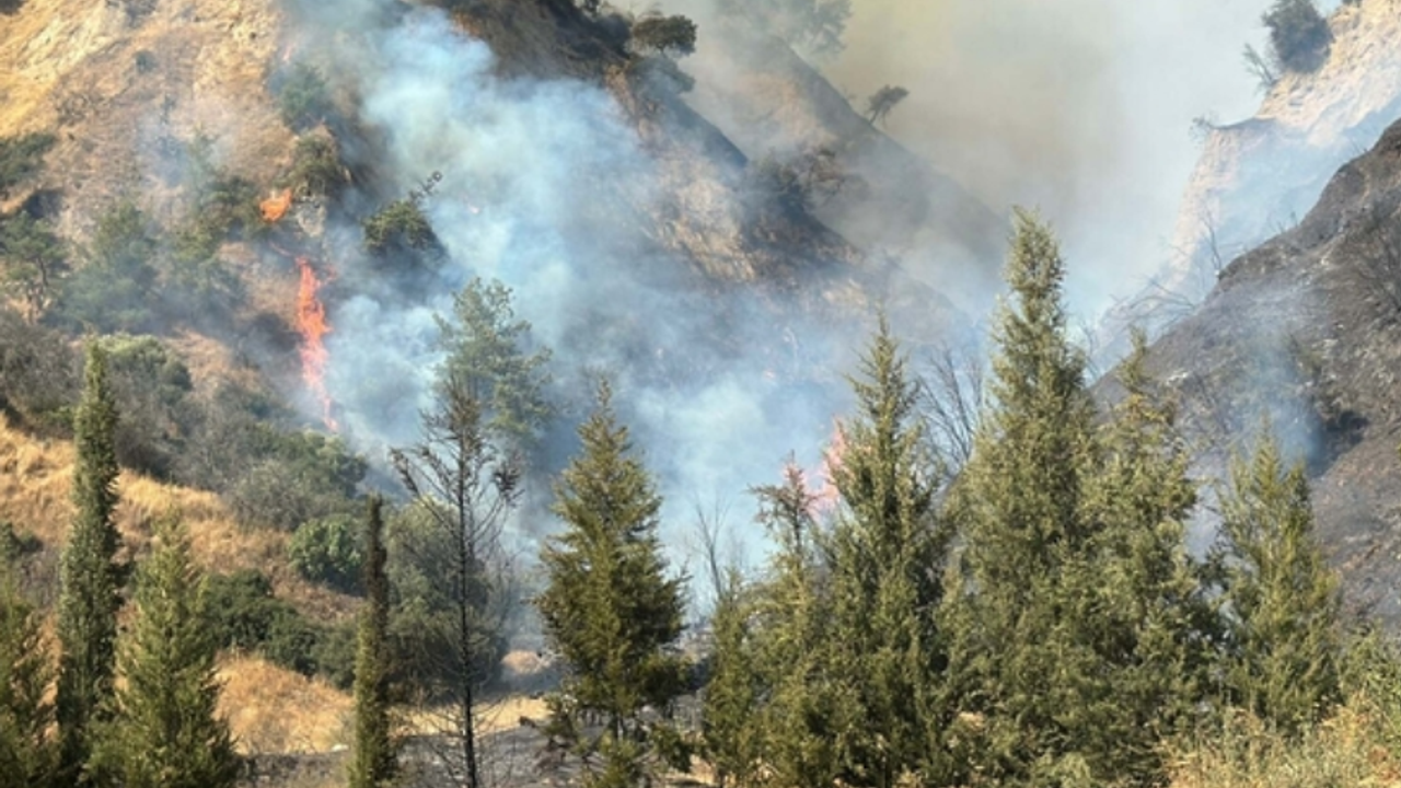 Alevler, rüzgarın da etkisiyle ormana sıçradı. İhbar üzerine bölgeye çok sayıda ekip sevk edildi. Alevlere müdahale sürüyor.