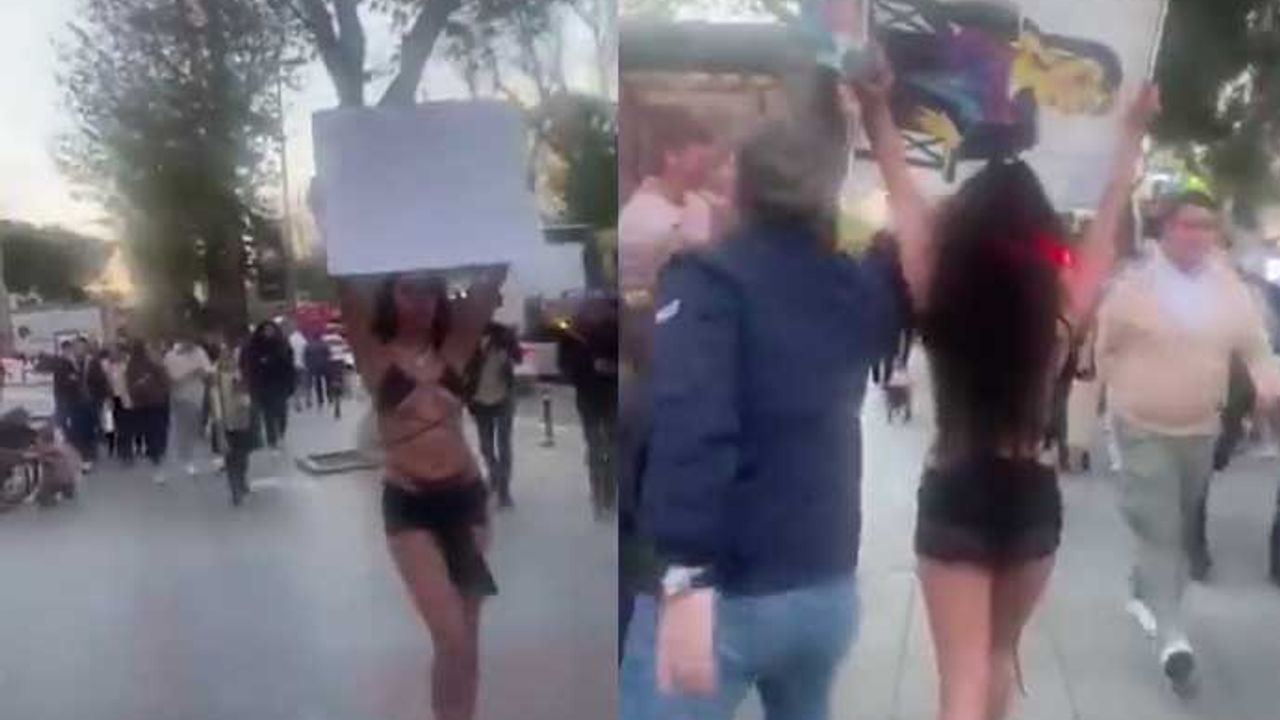 Daha önce sergilediği sokak performanslarıyla çok konuşulan manken Melisa Yaren Aydınalp bu kez elinde “Memelere özgürlük” yazılı pankartla düdük çalarak Bağdat Caddesi’nde yürüdü. Aydınalp’in elindeki elindeki pankart bu sırada bir erkek tarafından yırtıldı. Pankartın yırtılmasının ardından ikili arasında sözlü tartışma yaşandı.YURT DIŞI YASAĞI