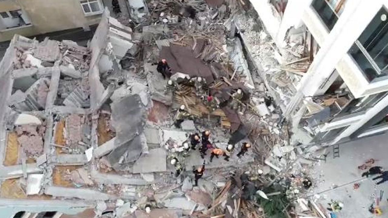 Bahçelievler'de çöken binanın bulunduğu alan demir bariyerlerle kapatıldı.