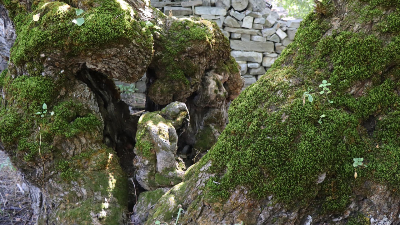 Devasa dut ağacının gövdesinde yıllar içinde oluşan derin yarıklar yere oturmuş ve başını eğmiş bir insan figürünü andırıyor. Bu görüntü, mahallelinin yanı sıra bölgeyi ziyaret eden doğa tutkunlarının da ilgisini çekiyor.