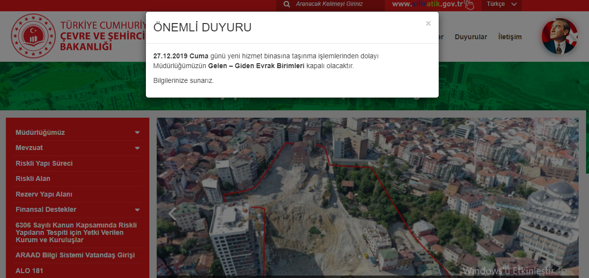 Taşınma gerekçe gösterilerek Cuma günü Kanal İstanbul Projesi ÇED Raporu'na yapılacak itiraz başvurularının teslim alınmayacağını duyururken, hafta sonu ve yeni yıl resmi tatilleri nedeniyle itiraz dilekçeleri işleme alınmayacak. Türkiye Cumhuriyeti Çevre ve Şehircilik Bakanlığı'na bağlı İstanbul Altyapı ve Kentsel Dönüşüm Müdürlüğü'nün web sitesine girildiğinde "27.12.2019 cuma günü yeni hizmet binasına taşınma işlemlerinden dolayı müdürlüğümüzün Gelen - Giden Evrak Birimleri kapalı olacaktır. Bilgilerinize sunarız" duyurusu yer alıyor. https://tele1.com.tr/istanbullular-harekete-gecti-kanal-istanbulun-iptali-icin-seferberlik-basladi-113548/