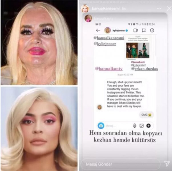 Geçtiğimiz günlerde Kylie Jenner'ın kendisini taklit ettiğini iddia eden ve "Yeter artık, taklitçi kezban!" diyerek isyan eden Banu Alkan, bu kez Jenner'ın kendisine mesaj attığını öne sürdü.