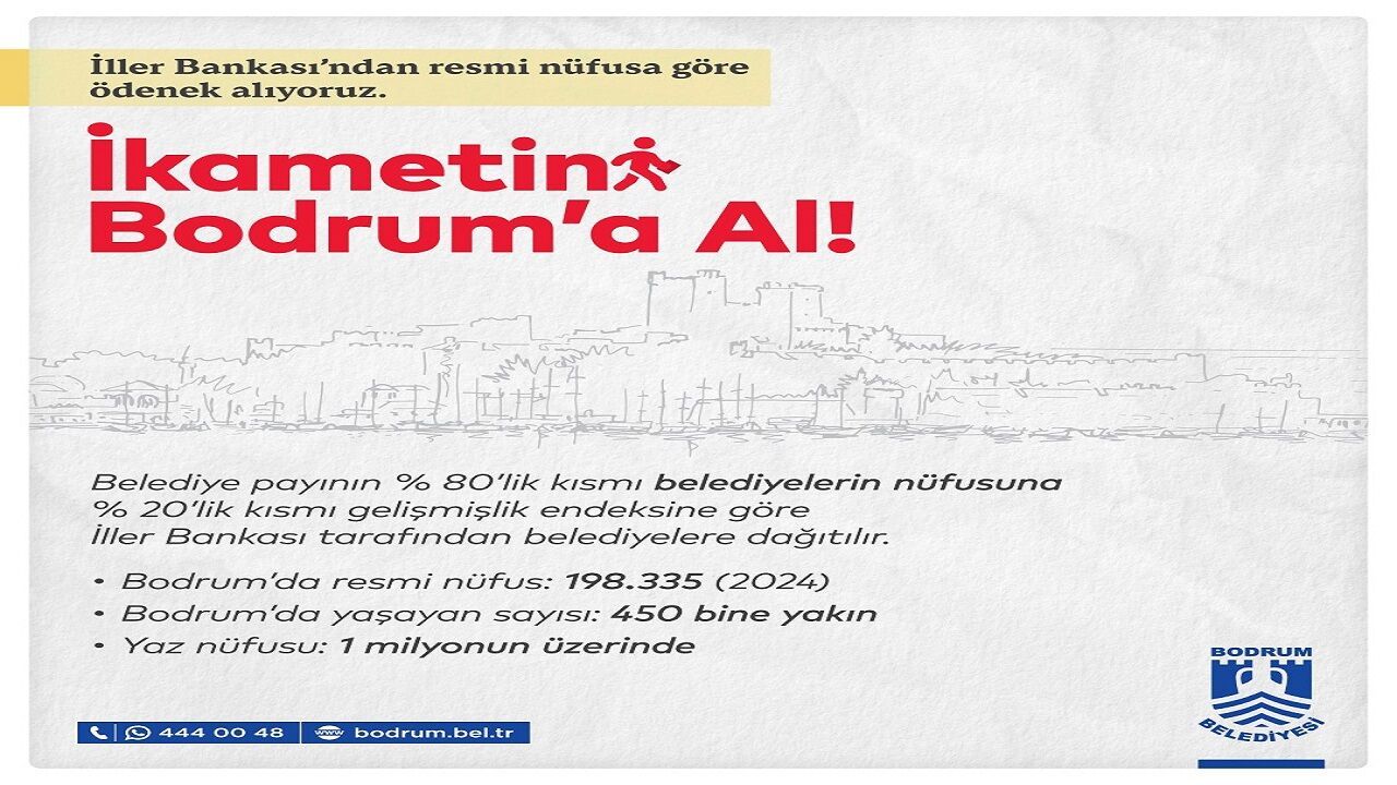 Kentimize sunduğumuz katkıların artması ve daha etkili hizmet yaratmamız için ikametinizi Bodrum’a alarak bütçemizin artmasına katkı sunabilirsiniz. İlçe Nüfus Müdürlüğünden işlemlerinizi gerçekleştirmenizi diliyor, duyarlılığınız için teşekkür ediyorum.”