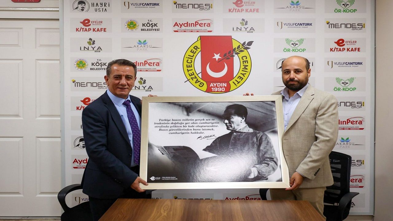 Başkan Yetişkin, her iki cemiyete de Ulu Önder Gazi Mustafa Kemal Atatürk’ün gazete okurken çekilmiş ikonik bir fotoğrafının yer aldığı, çerçeveli büyük boy bir tablo hediye etti. Tablo üzerinde, Atatürk’ün basına verdiği önemi ortaya koyan şu söz yer aldı: